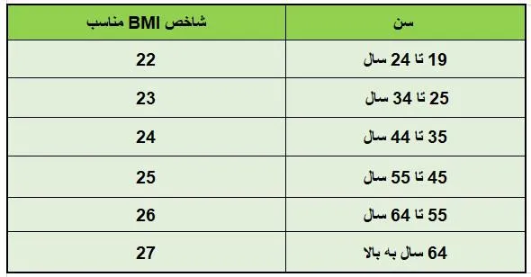 BMI=وزن (کیلوگرم)قد (متر)2\text{BMI} = \frac{\text{وزن (کیلوگرم)}}{\text{قد (متر)}^2}